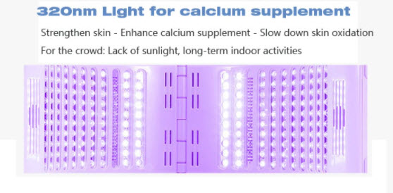 این دستگاه عملکرد روشنایی و مکمل کلسیم را دارد. دو لامپ uvb با طول موج 320nm از قبل نصب شده اند. پس از تابش روی پوست انسان ، پوست از طریق واکنش فتوشیمیایی ، تبدیل به ویتامین D3 کلسترولسترول به کولکالسیفرول میشود که درون زا ویتامین D3 است و باعث متابولیسم و ​​جذب کلسیم و فسفردر بدن می شود
