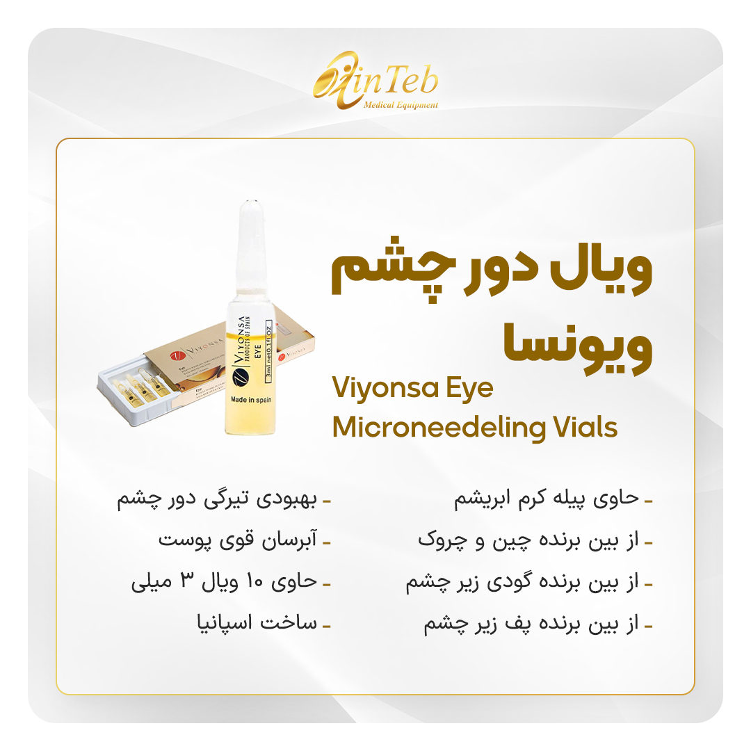 ویال آمپول دور چشم ویونسا گودی و چین و چروک زیر چشم را از بین برده و پف و تیرگی دورچشم را بهبود میدهد. این ویال با آبرسانی فوق العاده خود پوست را مرطوب نگه داشته و باید گفت که غیر قابل تزریق میباشد. ویال دور چشم ویونسا حاوی عصاره پیله کرم ابریشم بوده و با تعداد 10 ویال 3 میل روانه بازار شده است.
